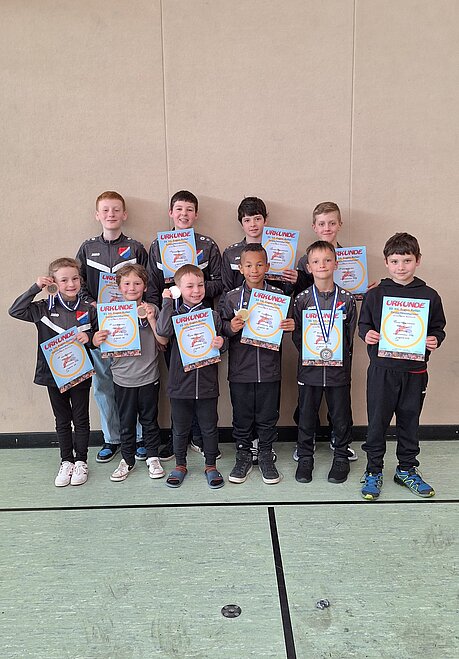 Carlo Santangelo konnte in der U8 (bis 24 kg) seine gute Turnierbilanz 2025 weiter ausbauen und erreichte nach drei harten Kämpfen ebenfalls den Bronzerang. Zurück zu alter Stärke fand auch Niklas Bickel (U10 bis 38 kg). Nur sein erster Kampf ging verloren. Danach fing er sich und kam zunächst auf den 2. Rang im Pool. Auch im kleinen Finale ließ er sich nicht die Butter vom Brot nehmen und holte sich den Pokal für den 3. Platz.