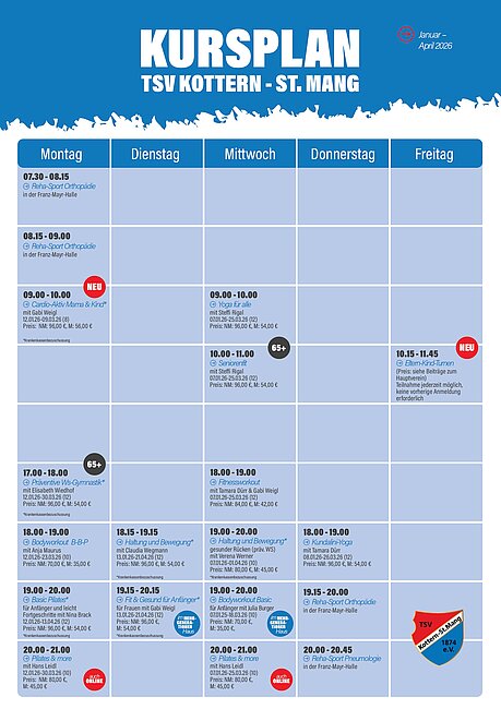 Hier finden Sie unseren neuen Kursplan als pdf.